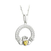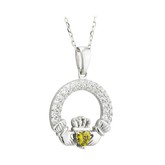 Birthstone Claddagh Pendants made by Solvar, Dublin, Ireland combine the wonderful Claddagh symbol with the individual birthstone. These Sterling Silver Birthstone pendants come with an 18 inch Sterling Silver chain and a beautiful presentation box.